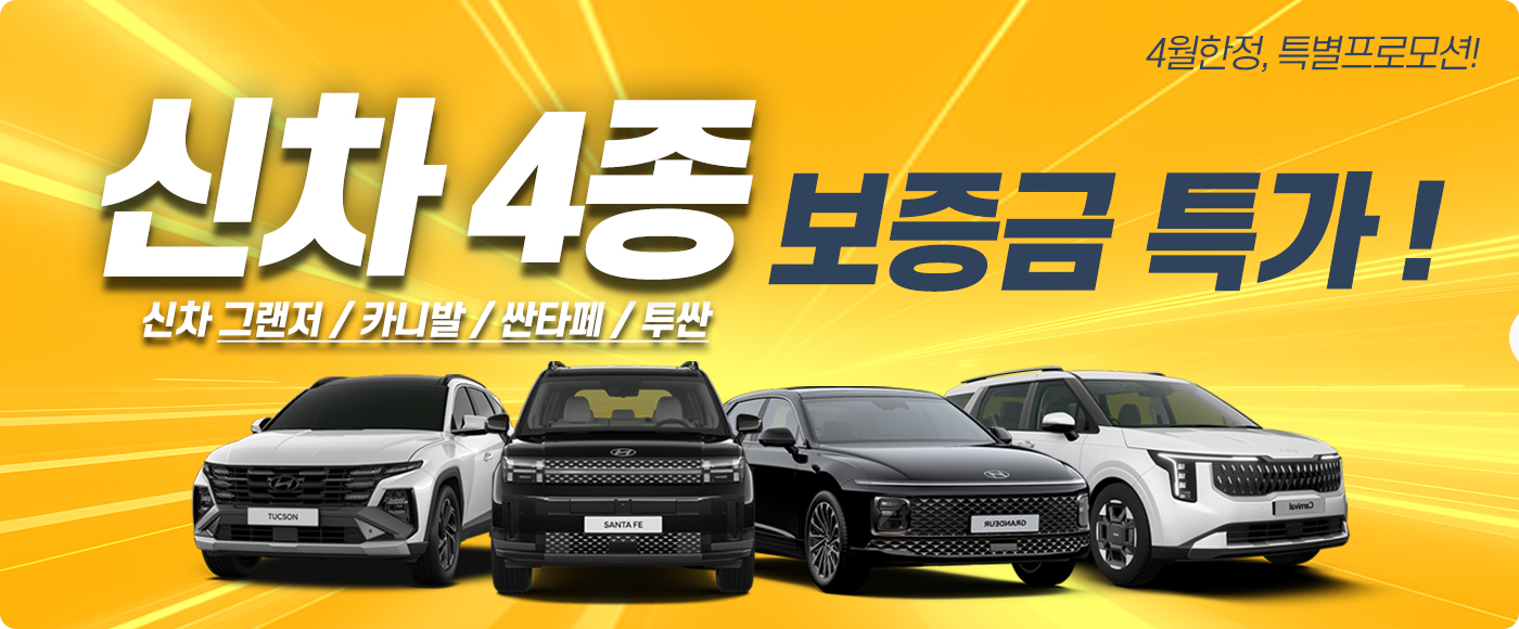 4월 한정, 신차 4종 보증금 특가 세일!