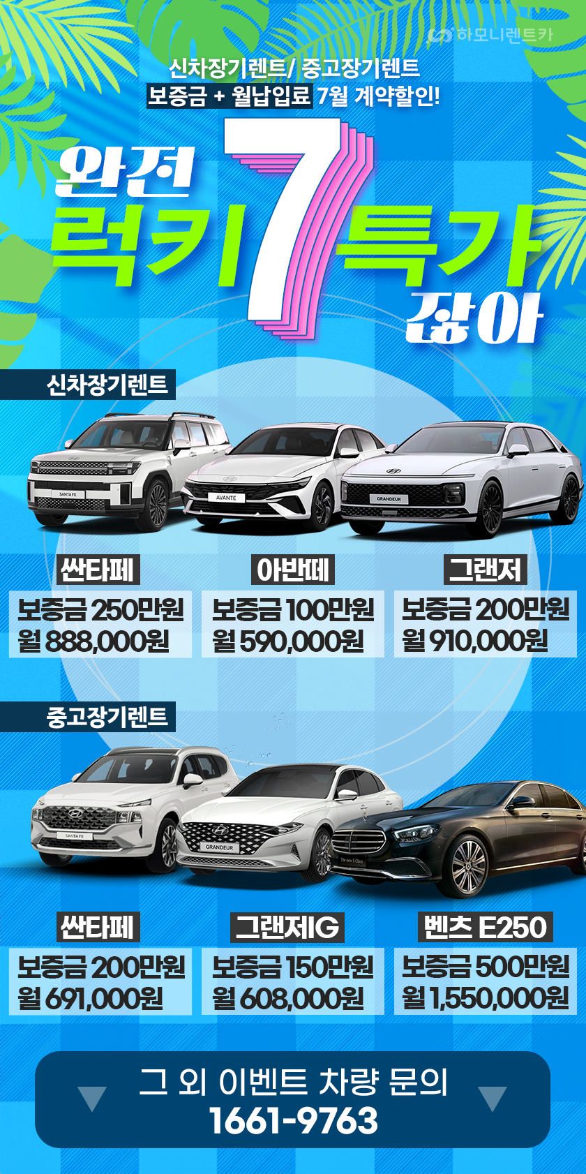 완전 럭키 7월이잖아!컴! 중고장기렌트, 신차장기렌트 보증금+월납입료 특가!