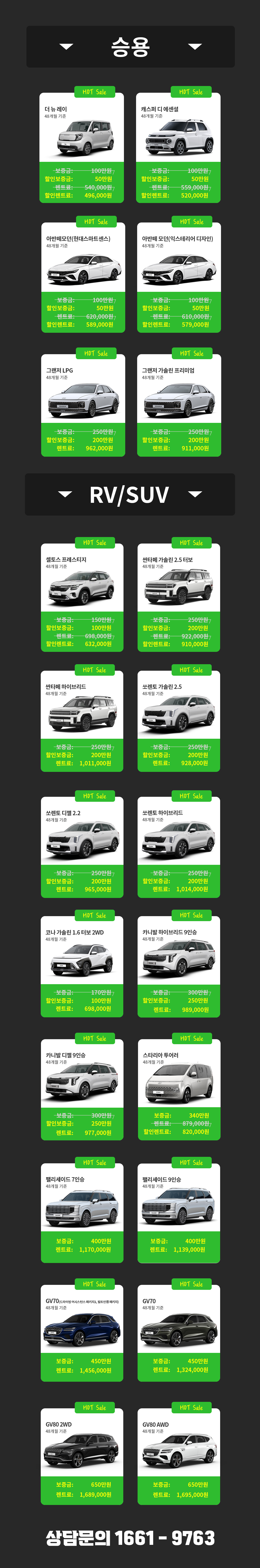 중고차량 대상, 렌트/리스 보증금 할인!