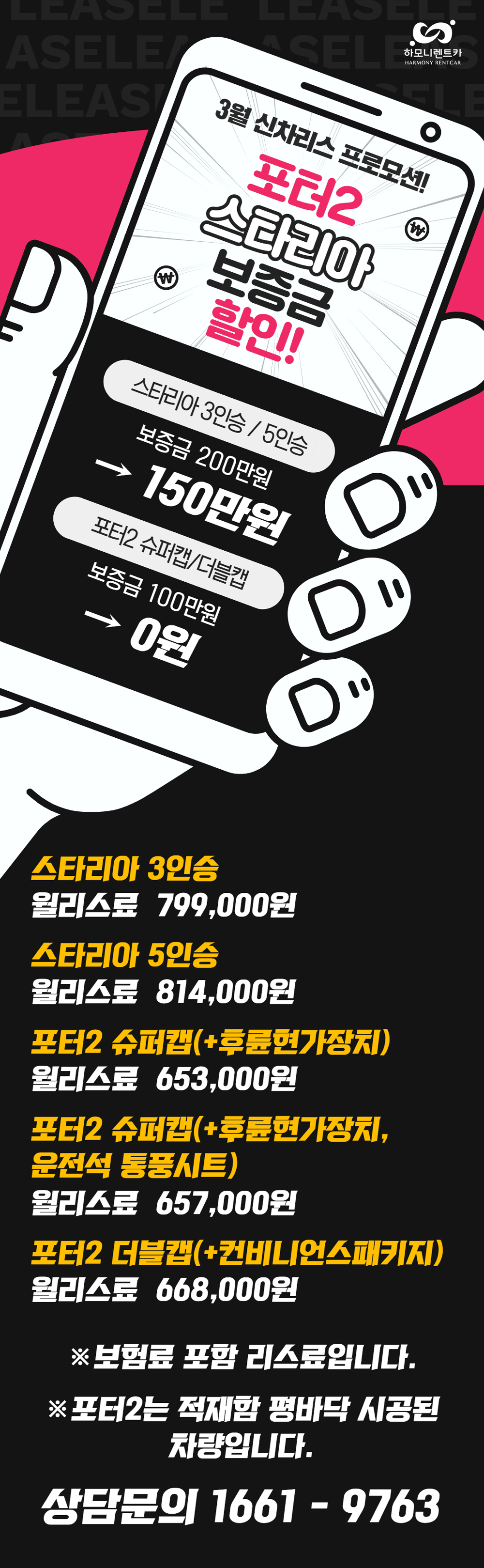 포터2 / 스타리아 밴 신차 리스 보증금 할인!
