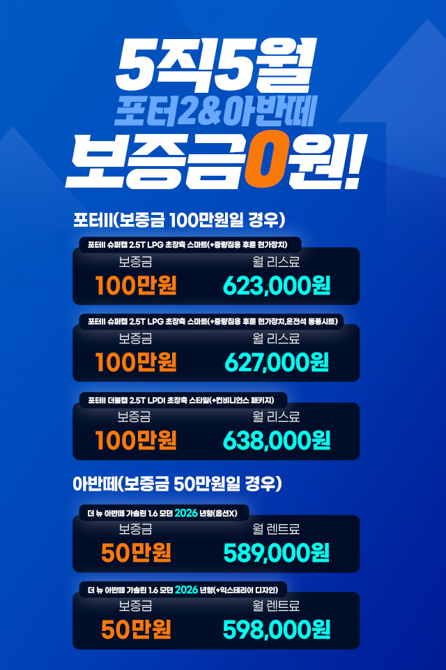 4월 한정, 신차 4종 보증금 특가 세일!